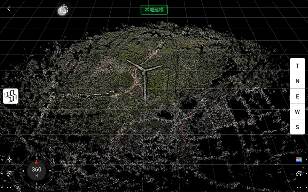 采集完成后,工作人员选择“本地建模”,依托 Pilot 2 本地高性能计算能力,仅需 2 分钟即可完成风机三维模型的快速重建。